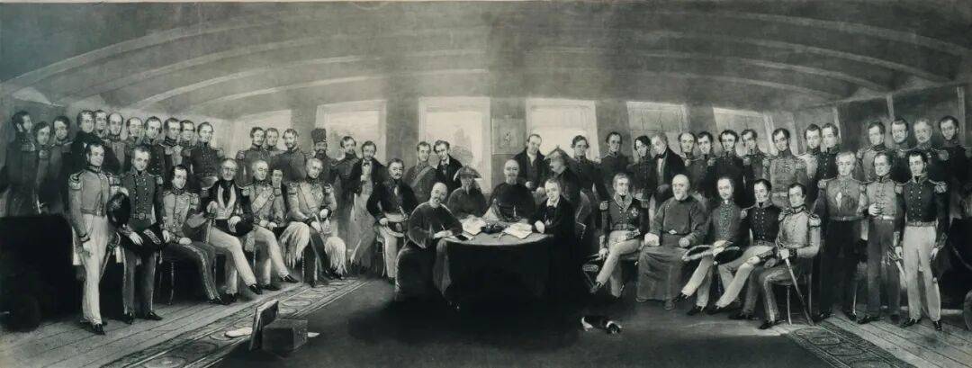 约翰·普拉特绘,约翰·伯内特刻《南京条约》签订现场