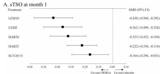 [1] KISHI T, et al. Comparative efficacy and safety of daridorexant, lemborexant, and suvorexant for insomnia: a systematic review and network meta-analysis[J]. Translational Psychiatry, 2025.