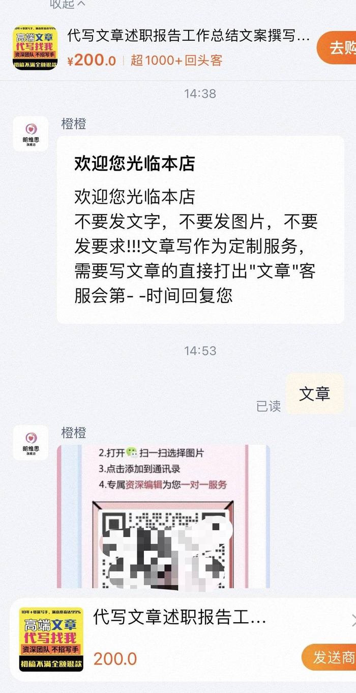 记者以消费者身份了解价格论文代写AI分阶段生成降重,跨专业接单现象普遍